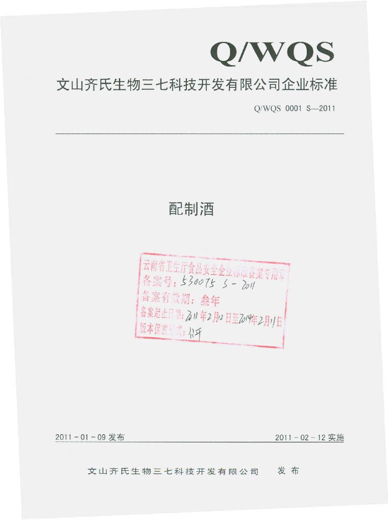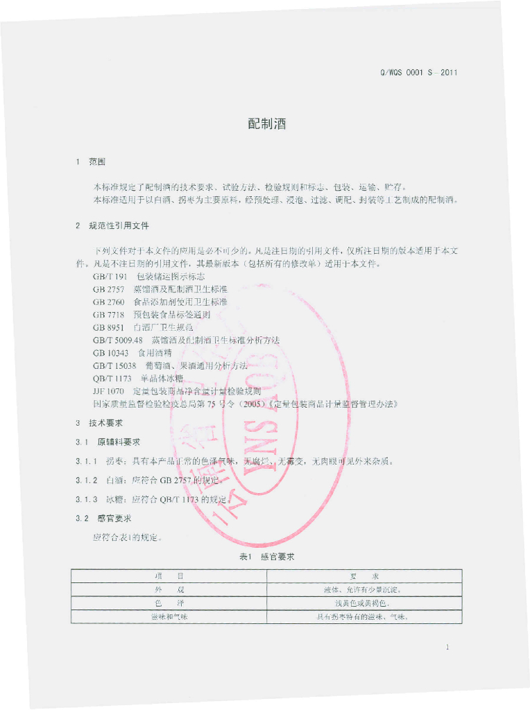 Q/WQS 0001S-2011 配制酒