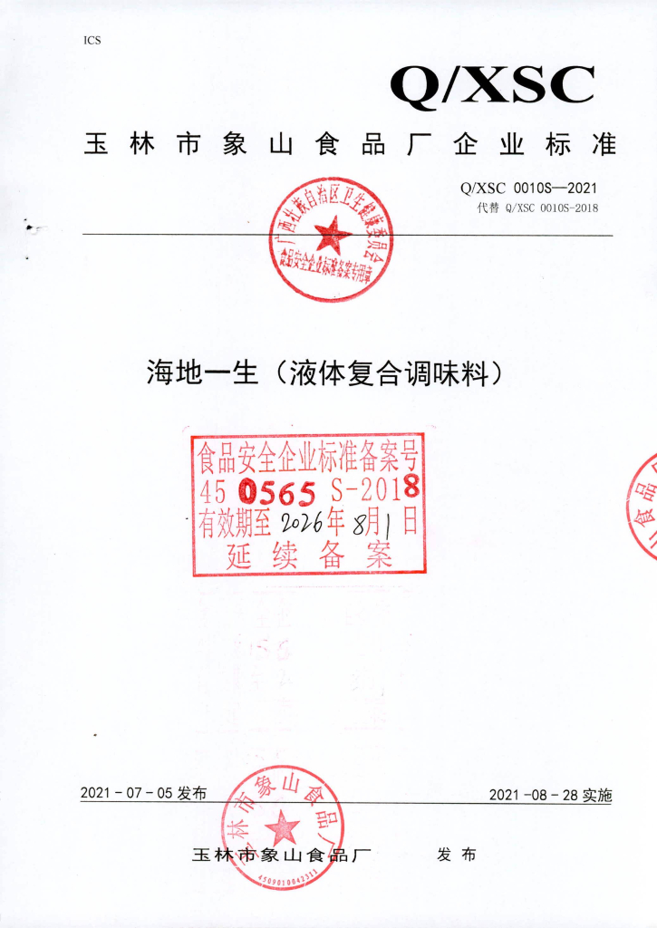 Q/XSC 0010S-2021 海地一生(液体复合调味料)