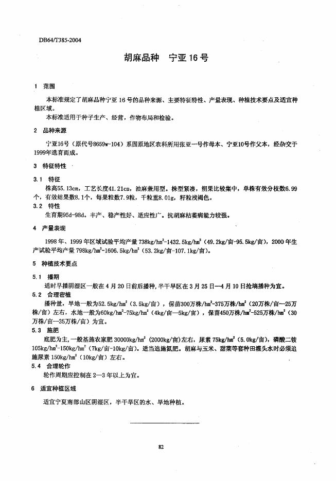 DB64/T 385-2004 胡麻品种 宁亚16号