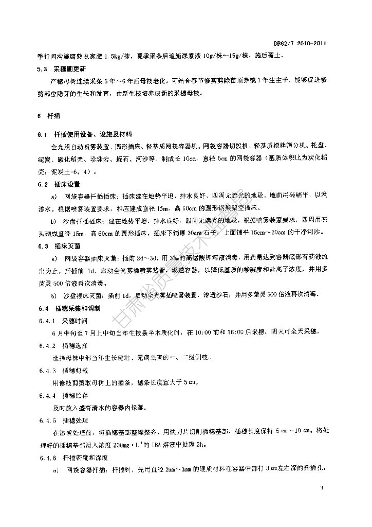 DB62/T 2010-2011 欧洲云杉扦插育苗技术规程
