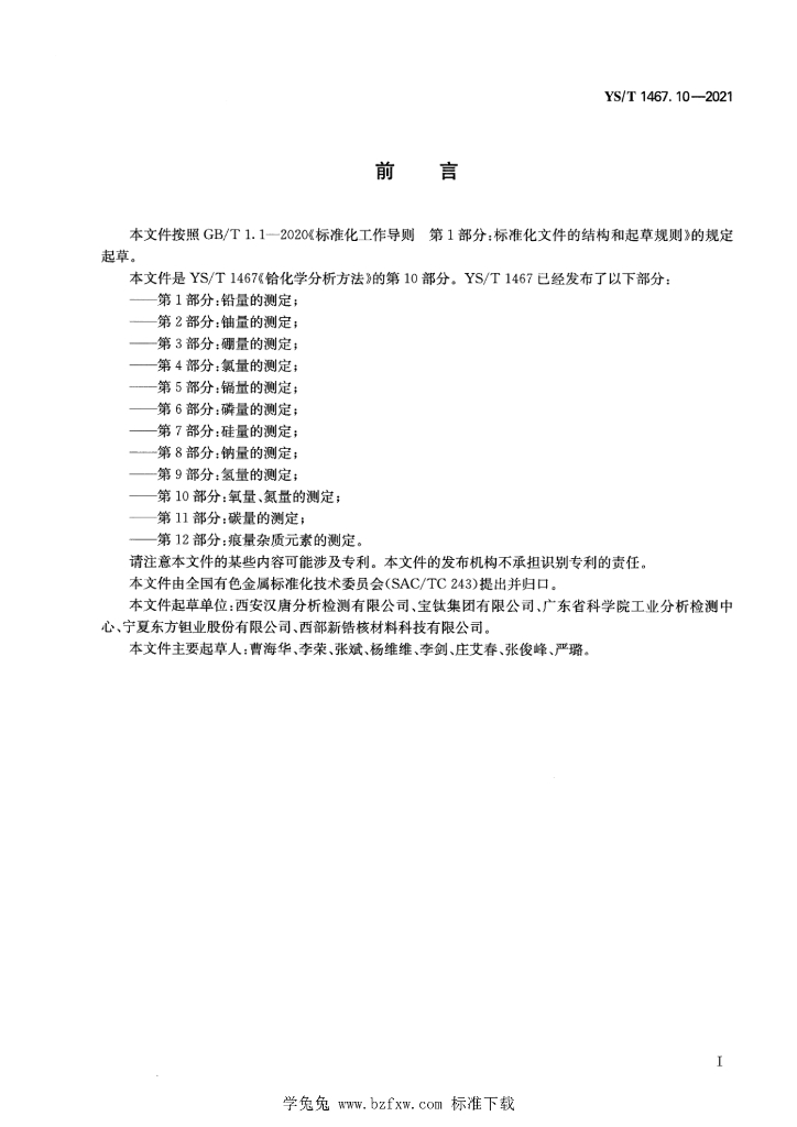 西安汉唐分析检测有限公司、宝钛集团有限公司、广东省科学院工业分析检测中心、宁夏东方钽业股份有限公司、西部新锆核材料科技有限公司