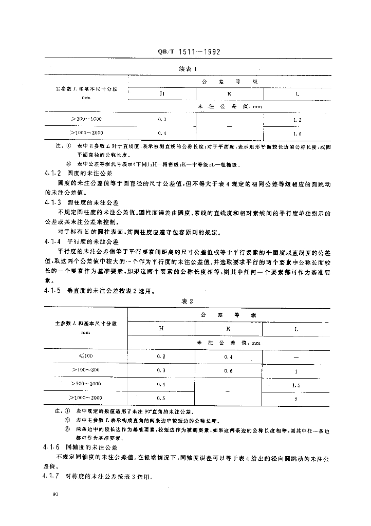 QB/T 1511-1992 缝纫机零件未注形状和位置公差