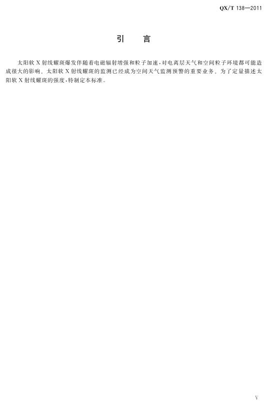 QX/T 138-2011 太阳软x射线耀斑强度分级