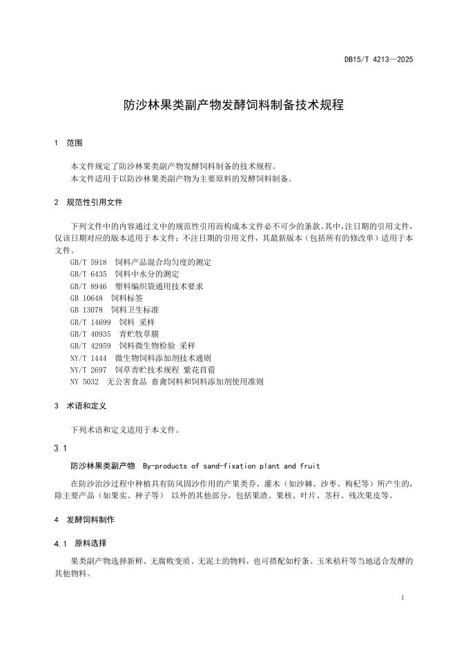 DB15/T 4213-2025 防沙林果类副产物发酵饲料制备技术规程