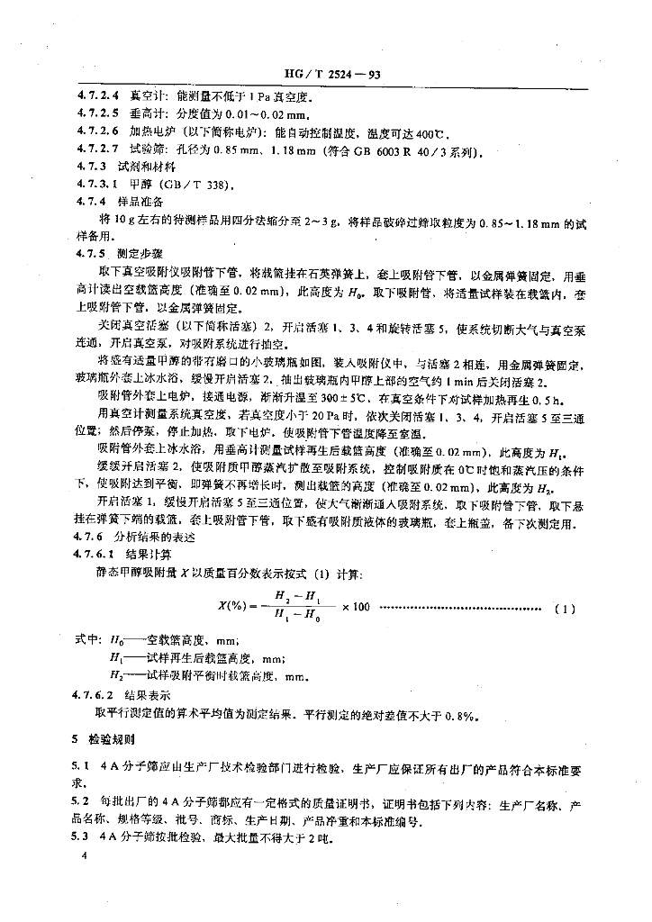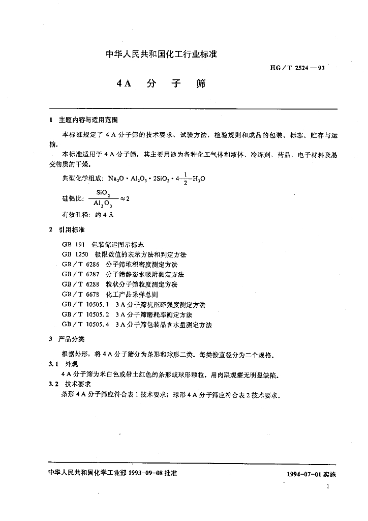 HG/T 2524-1993 4A分子筛