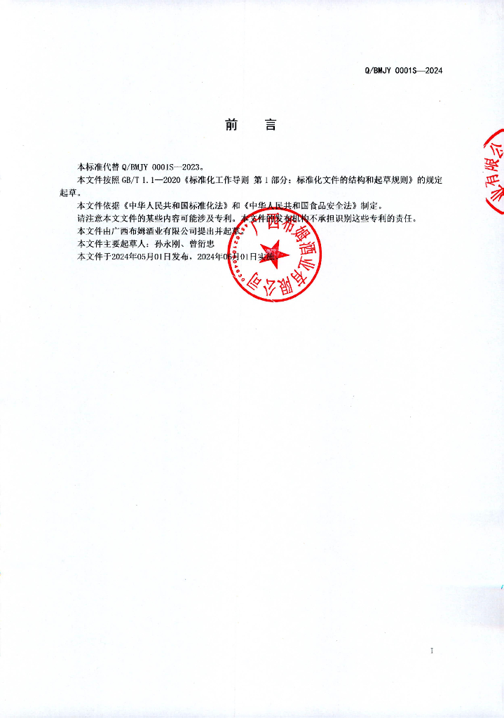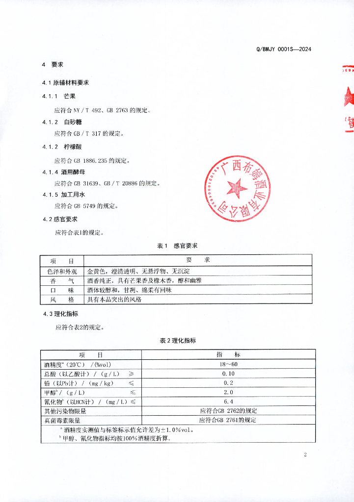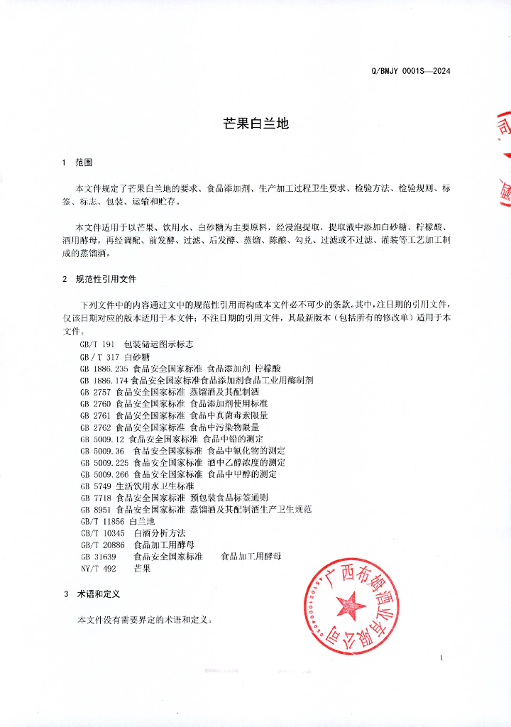 Q/BMJY 0001S-2024 芒果白兰地