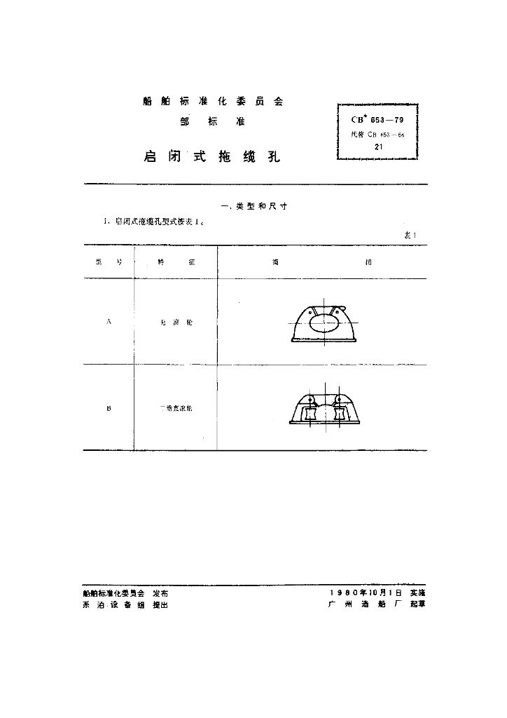 CB 653-1979 启闭式拖缆孔