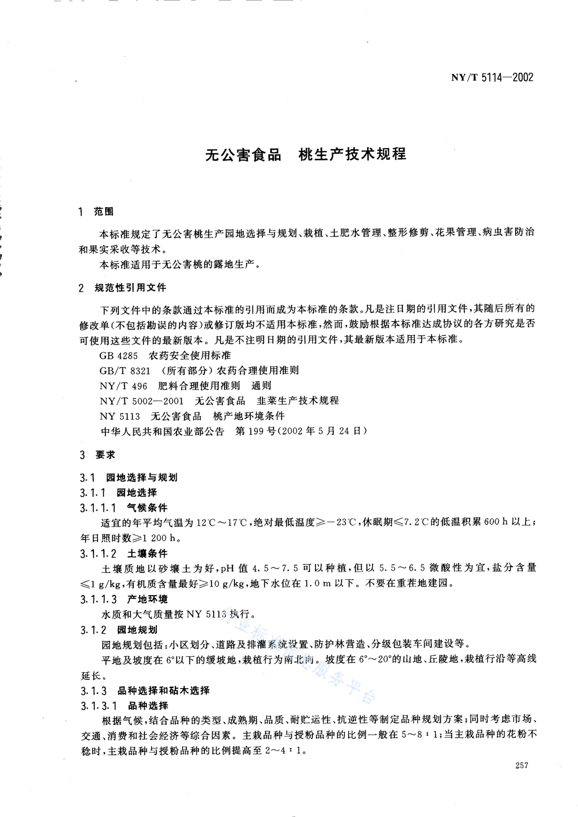 NY/T 5114-2002 无公害食品 桃生产技术规程