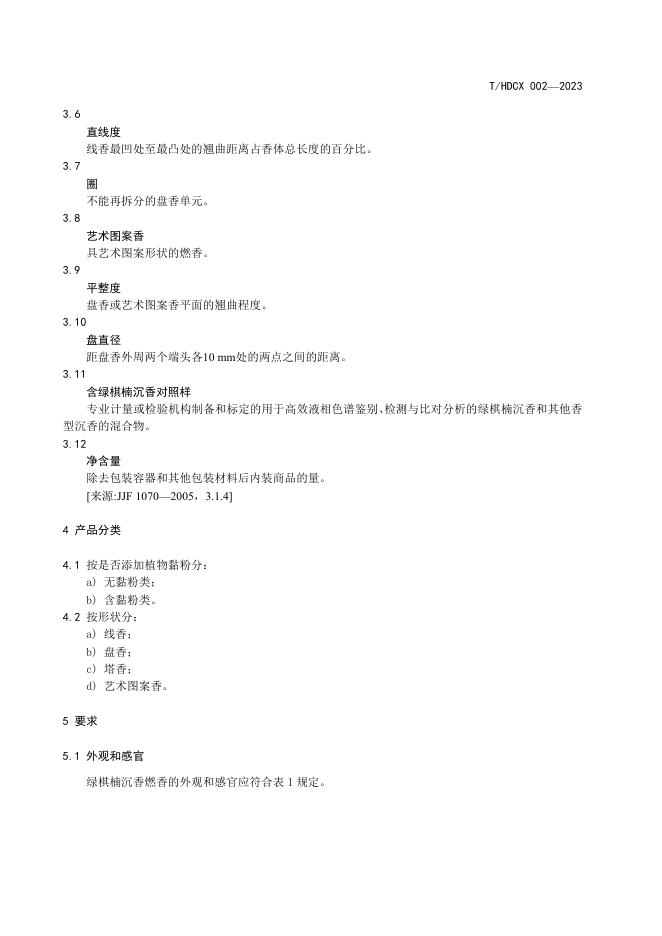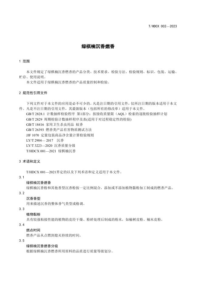 T/HDCX 002-2023 绿棋楠沉香燃香