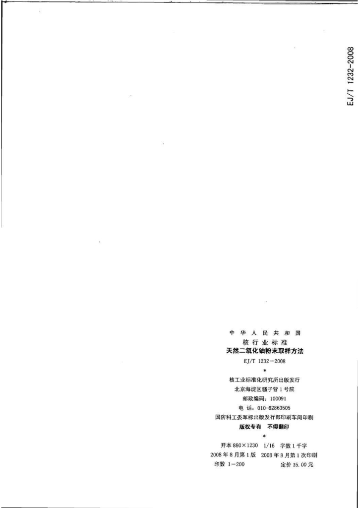 EJ/T 1232-2008 天然二氧化铀粉末取样方法