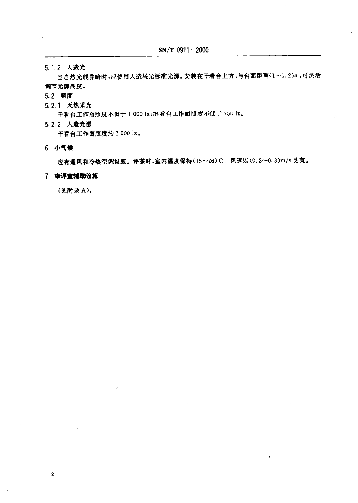 SN/T 0911-2000 进出口茶叶感官审评室条件