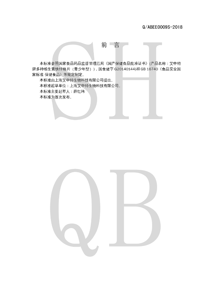 Q/ABEE 0009S-2018 艾申特牌多种维生素铁锌铬片(青少年型)