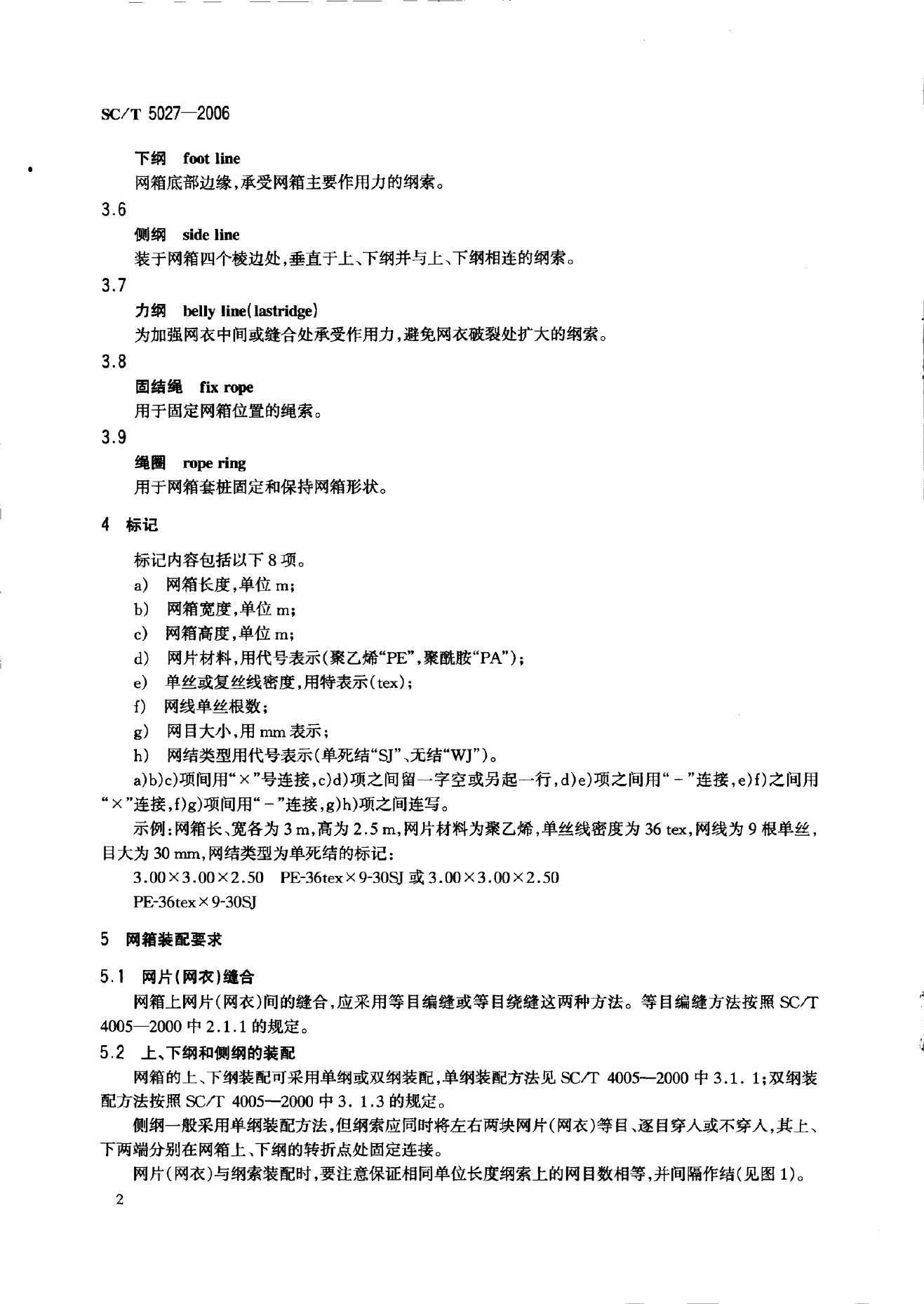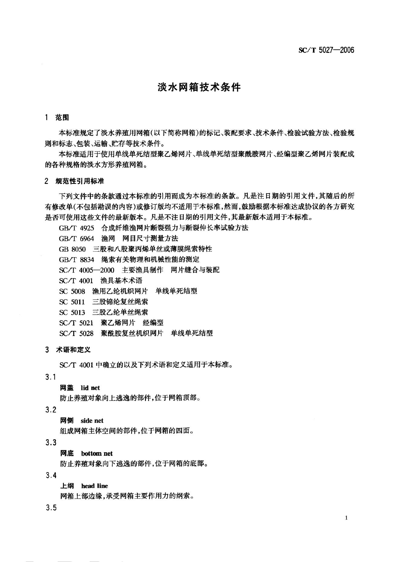 SC/T 5027-2006 淡水网箱技术条件