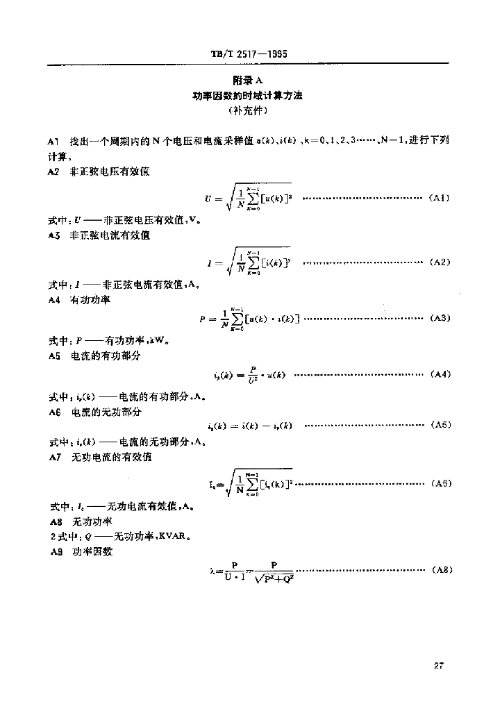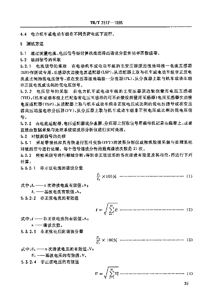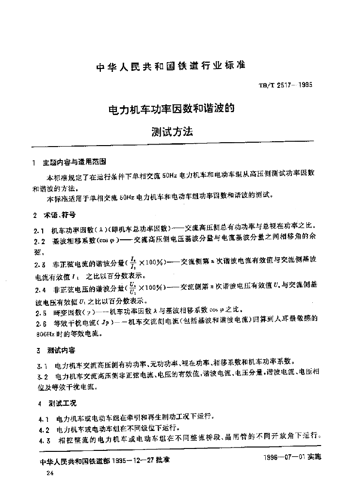 TB/T 2517-1995 电力机车功率因数和谐波的测试方法