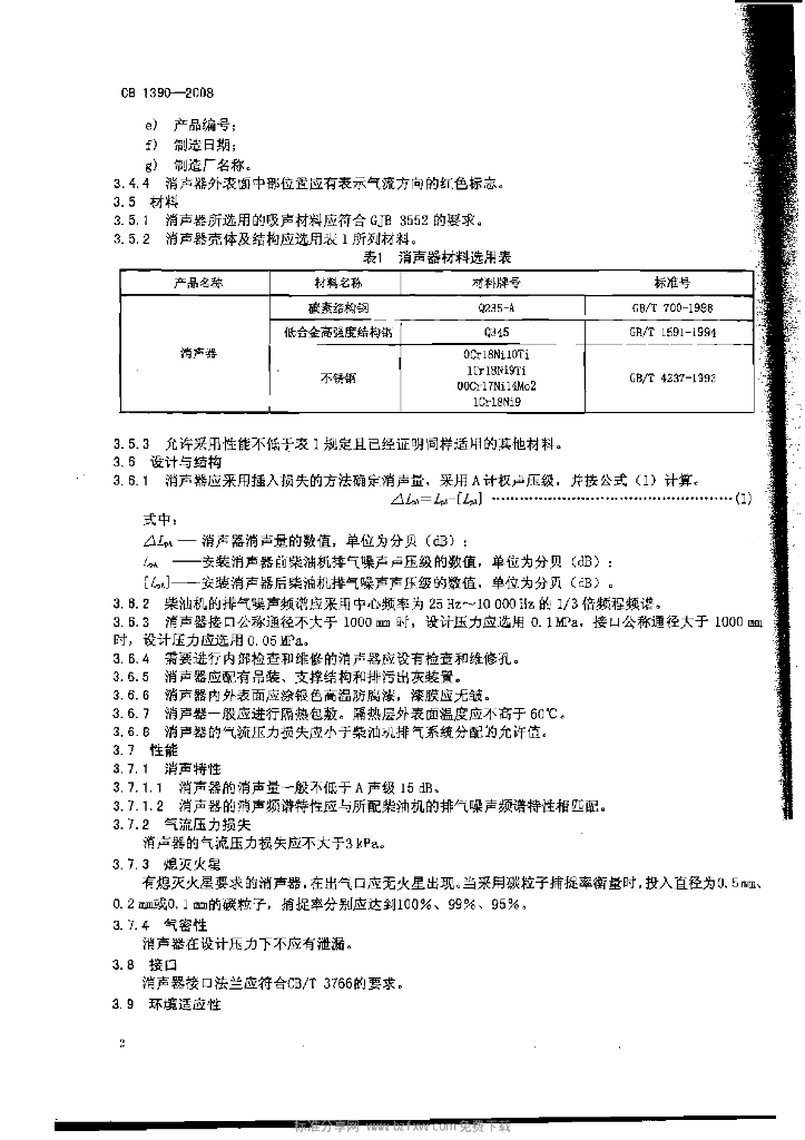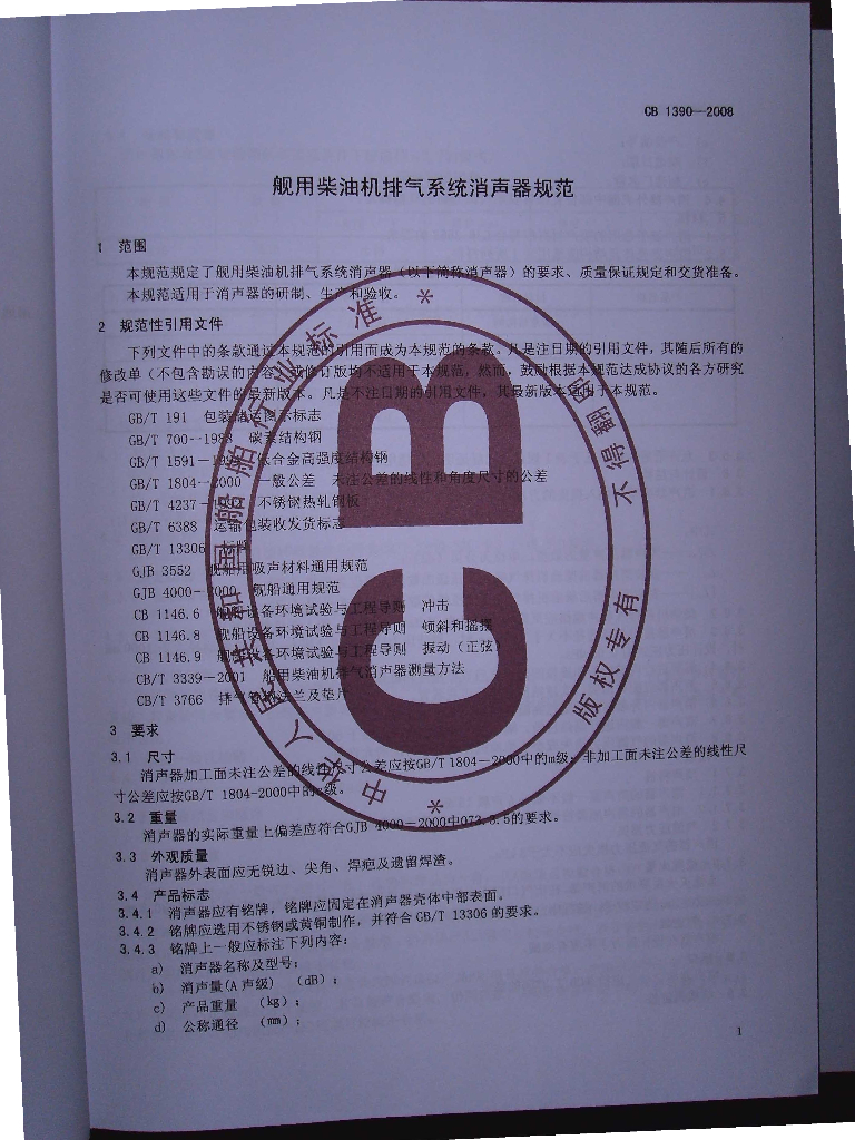 CB 1390-2008 舰用柴油机排气系统消声器规范