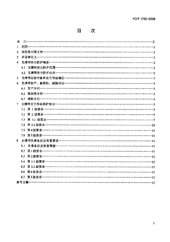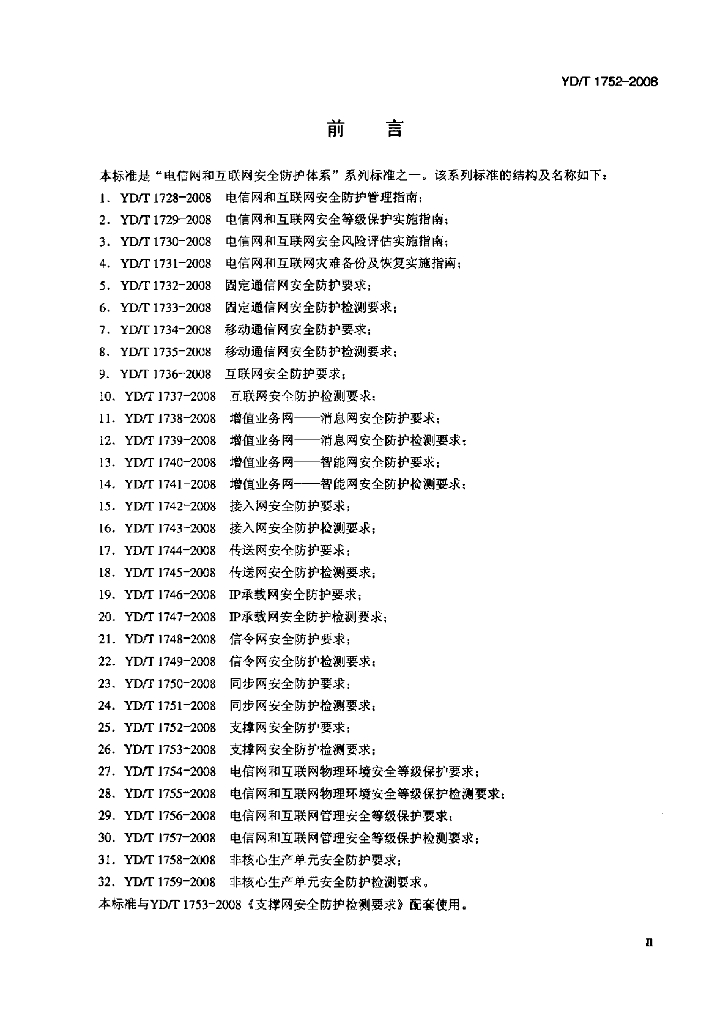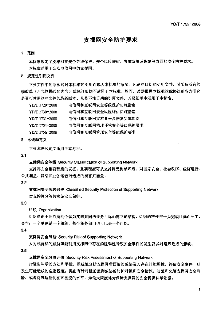 YD/T 1752-2008 支撑网安全防护要求