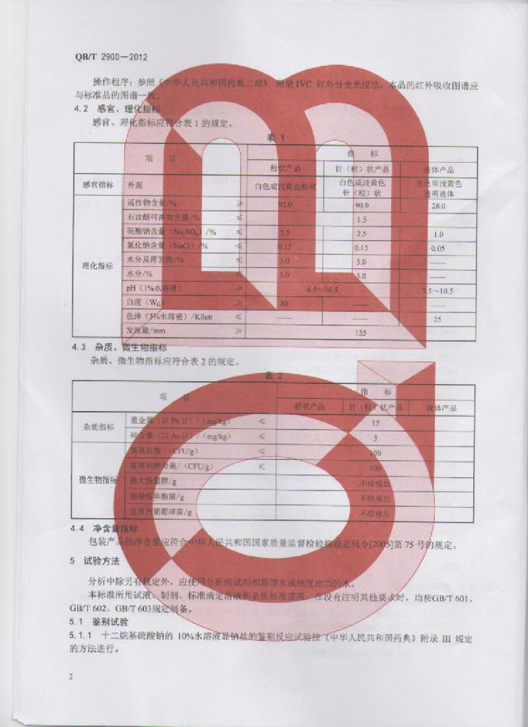 QB/T 2900-2012 口腔清洁护理用品牙膏用十二烷基硫酸钠