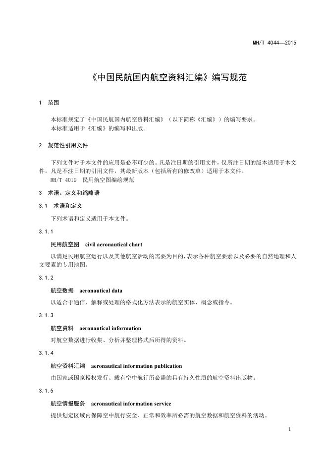 MH/T 4044-2015 中国民航国内航空资料汇编编写规范