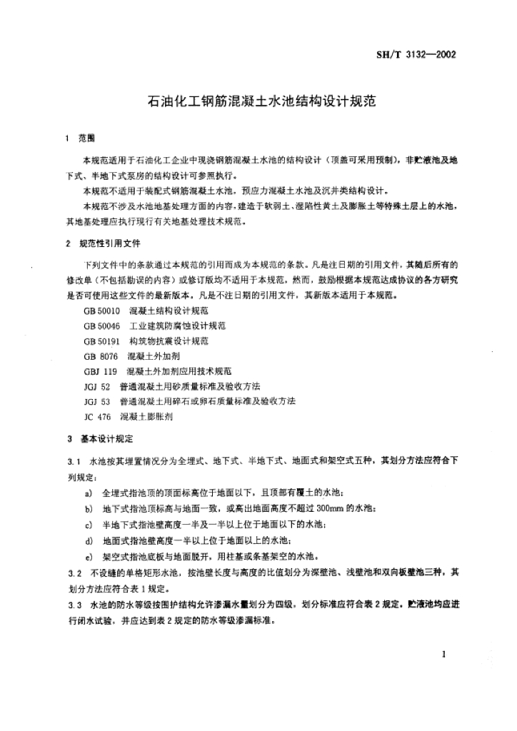 SH/T 3132-2002 石油化工钢筋混凝土水池结构设计规范