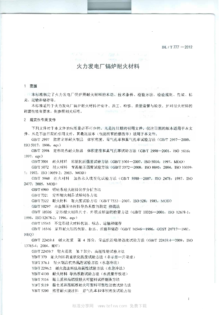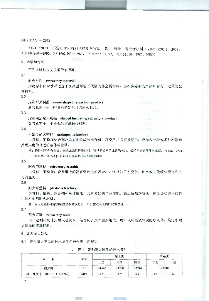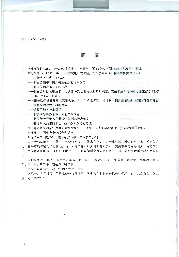 DL/T 777-2012 火力发电厂锅炉耐火材料