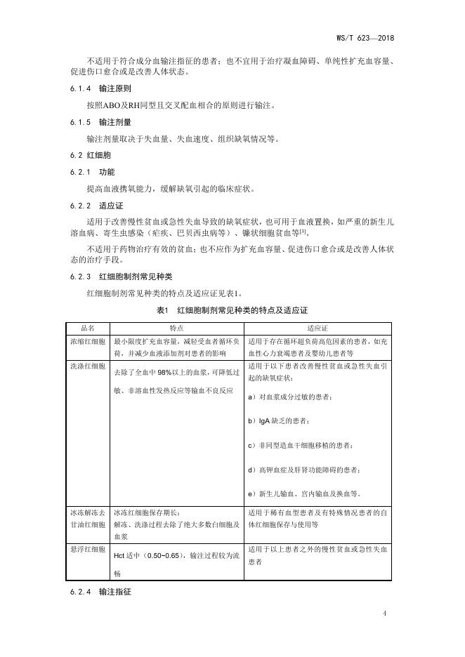 WS/T 623-2018 全血和成分血使用