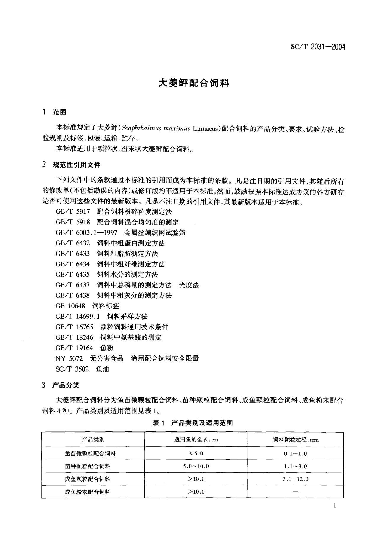 SC/T 2031-2004 大菱鲆配合饲料