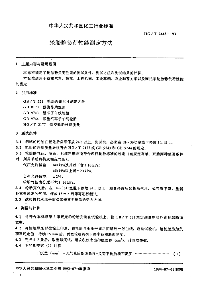 HG/T 2443-1993 轮胎静负荷性能测定方法