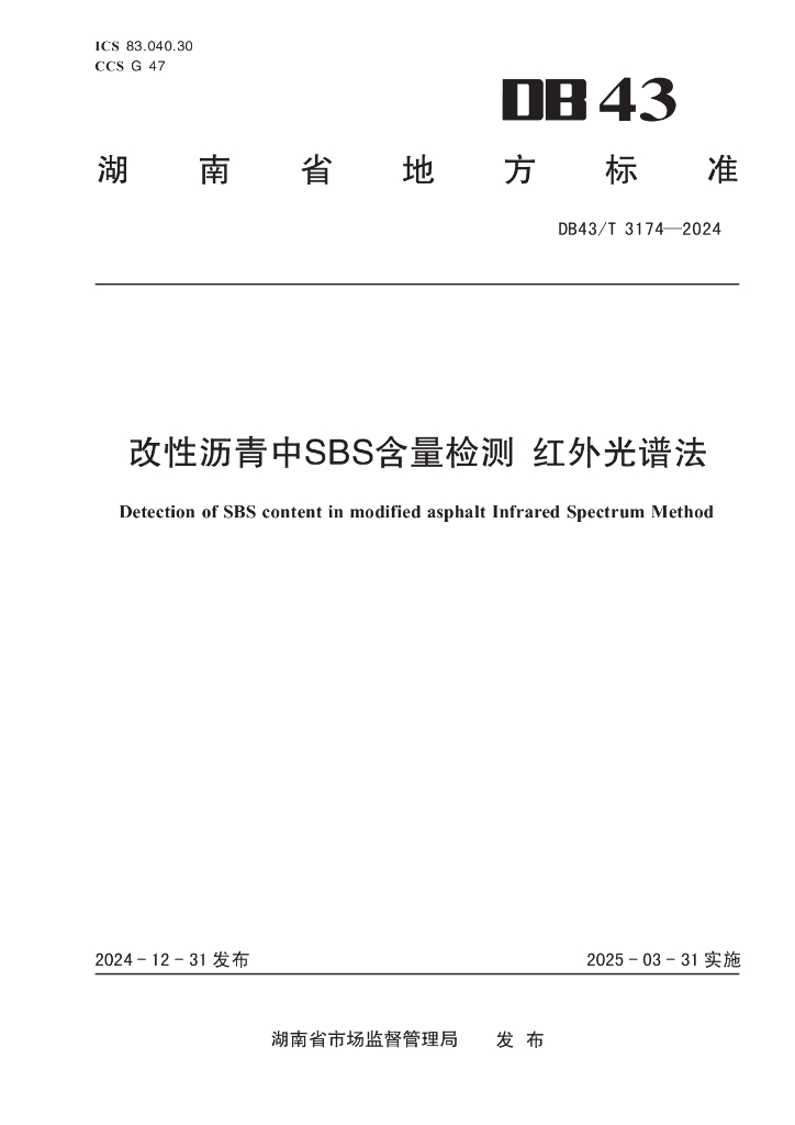 DB43/T 3174-2024 改性沥青中SBS含量检测 红外光谱法