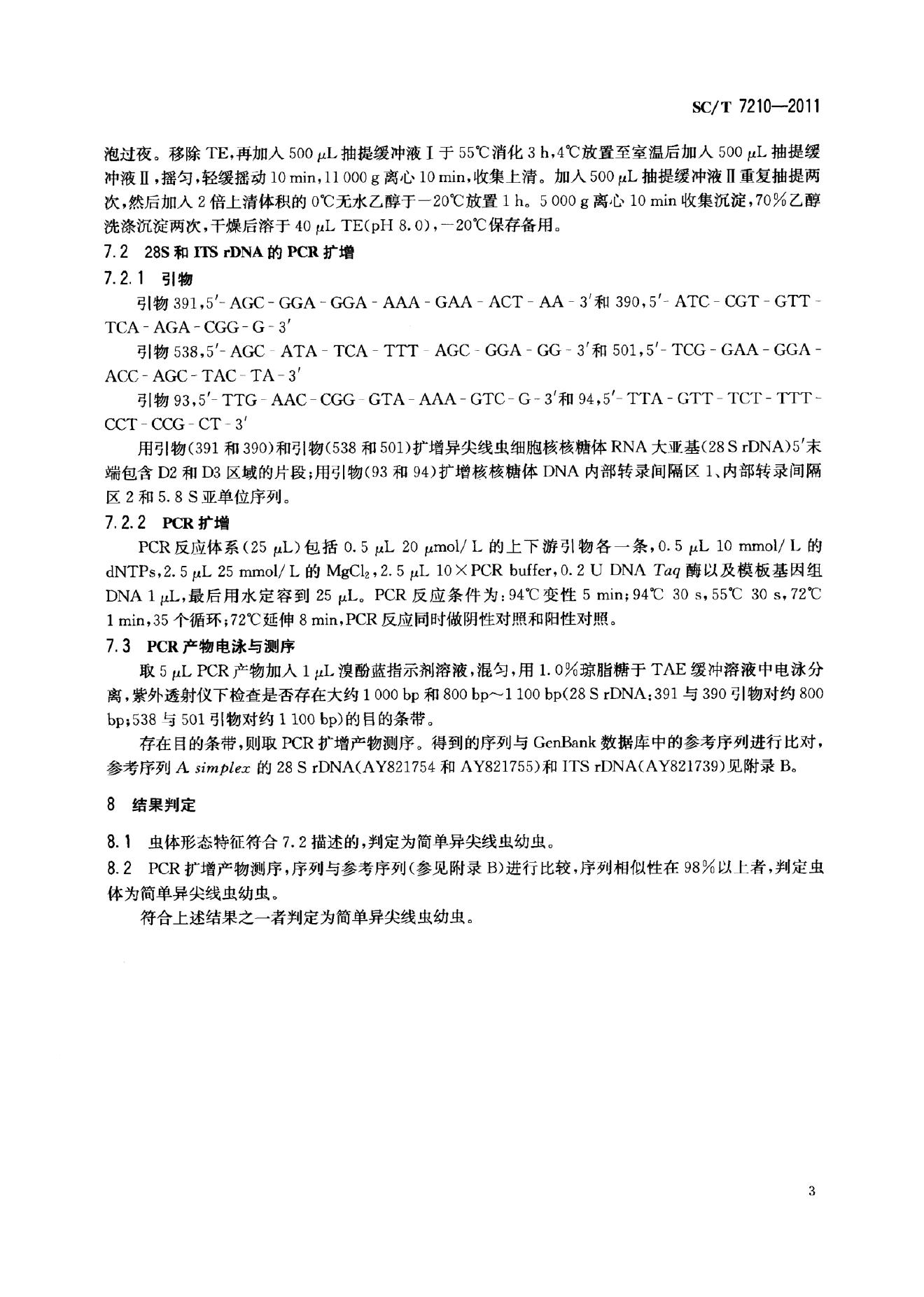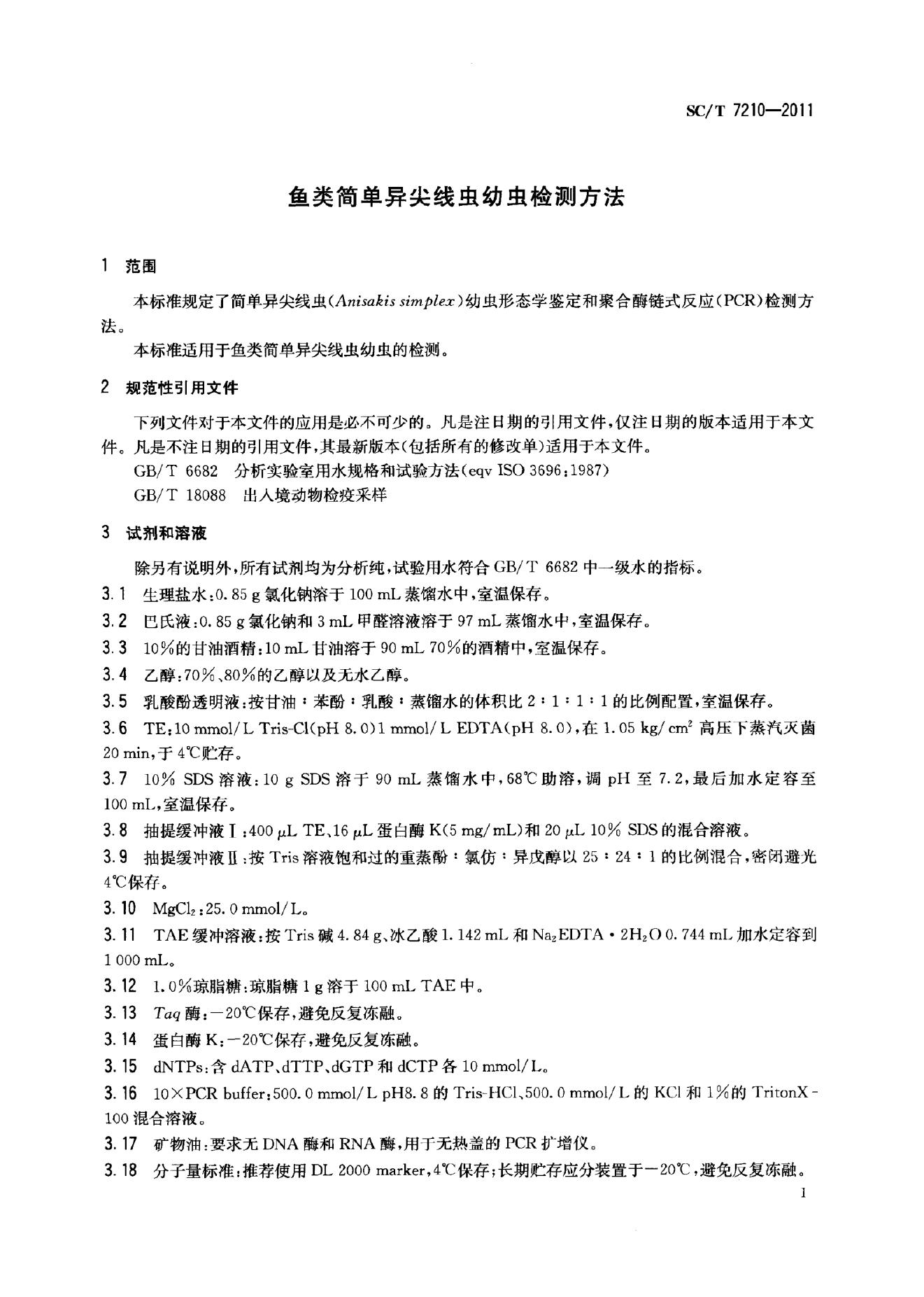 SC/T 7210-2011 鱼类简单异尖线虫幼虫检测方法