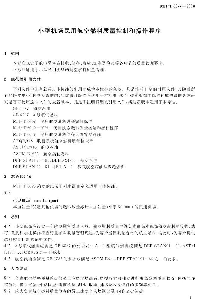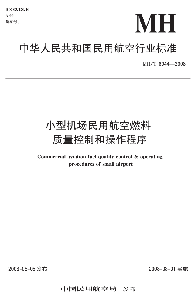 MH/T 6044-2008 小型机场民用航空燃料质量控制和操作程序