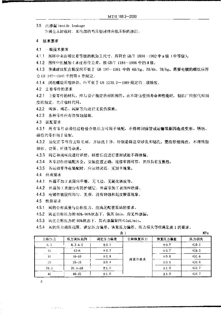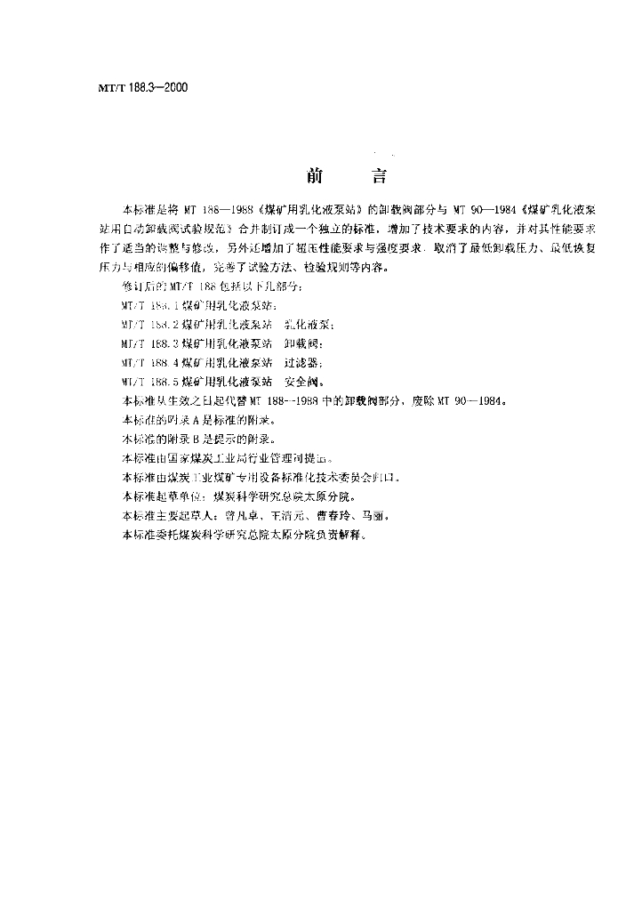 MT/T 188.3-2000 煤矿用乳化液泵站 卸载阀技术条件