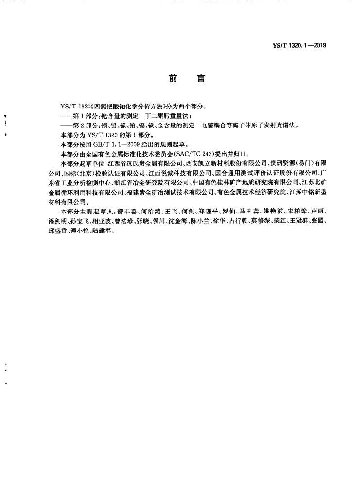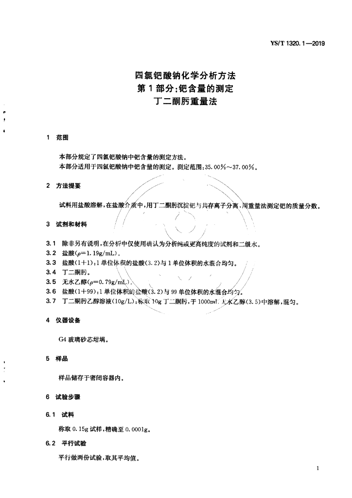 YS/T 1320.1-2019 四氯钯酸钠化学分析方法 第1部分:钯含量的测定 丁二酮肟重量法