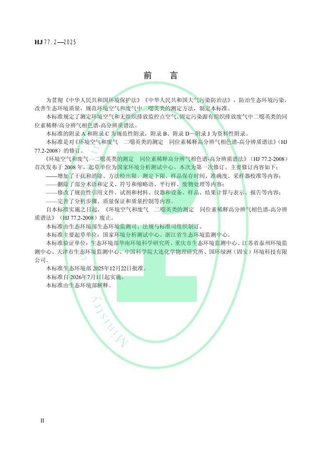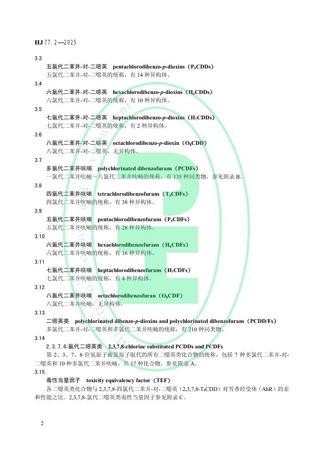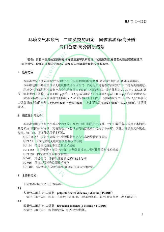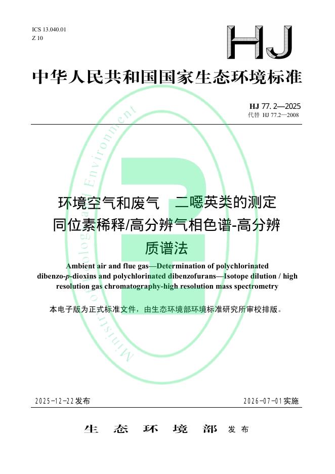 HJ 77.2-2025 环境空气和废气 二噁英类的测定 同位素稀释/高分辨气相色谱-高分辨质谱法