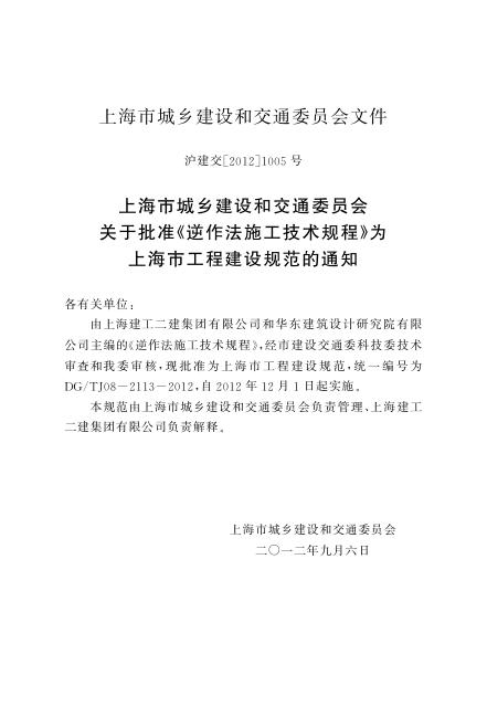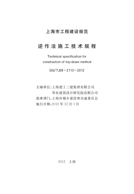DG/TJ 08-2113-2012 逆作法施工技术规程