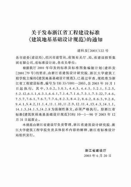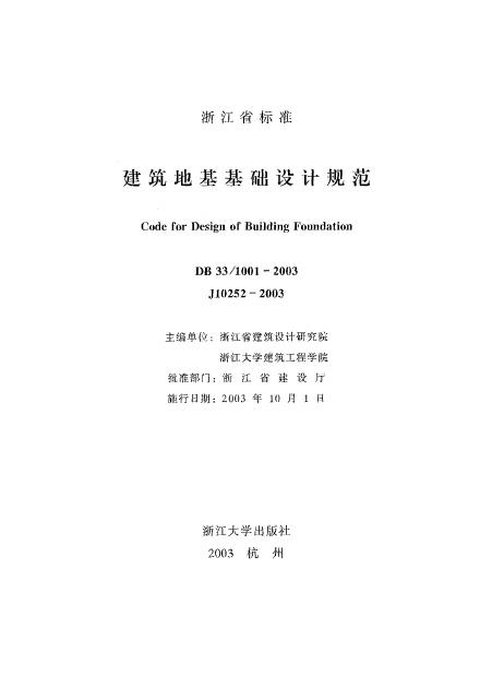 DB33/ 1001-2003 建筑地基基础设计规范