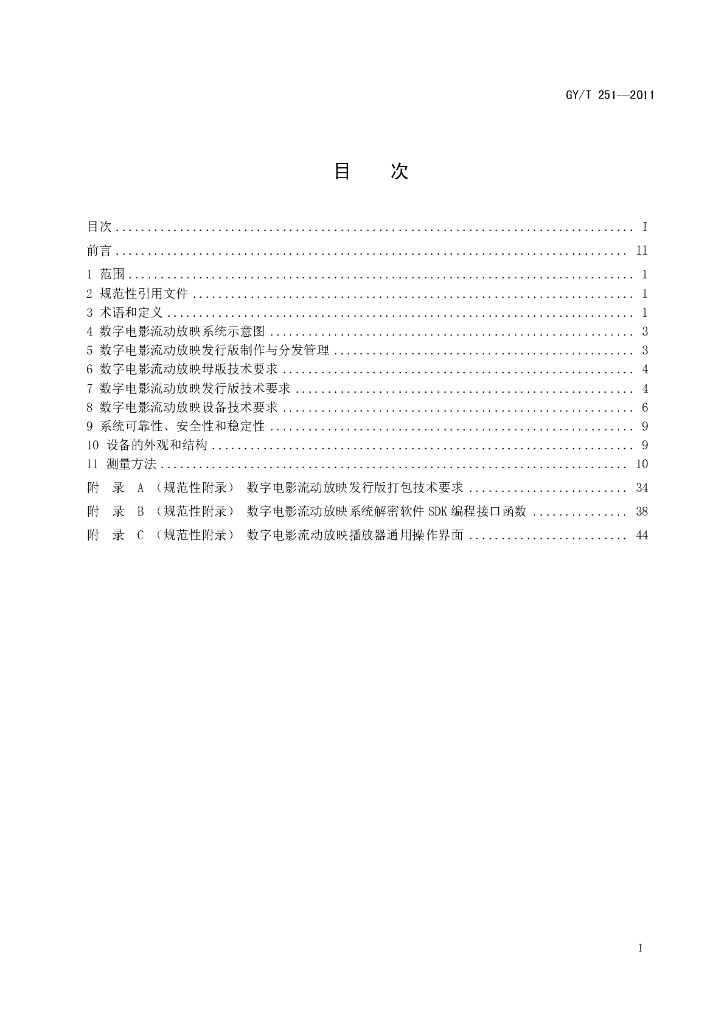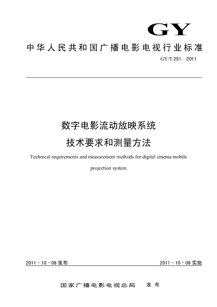 GY/T 251-2011 数字电影流动放映系统技术要求和测量方法