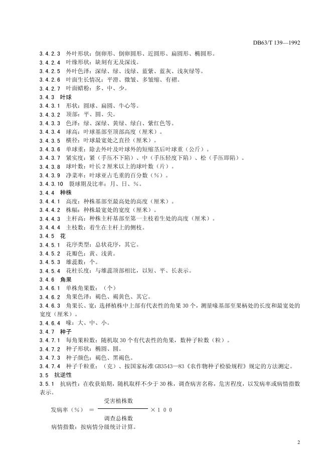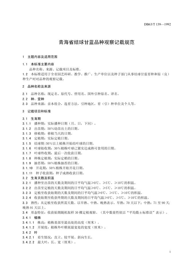 DB63/T 139-1992 结球甘蓝品种观察记载标准