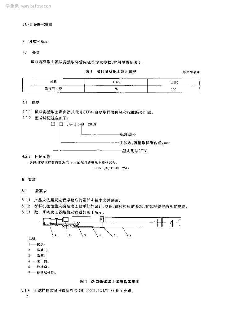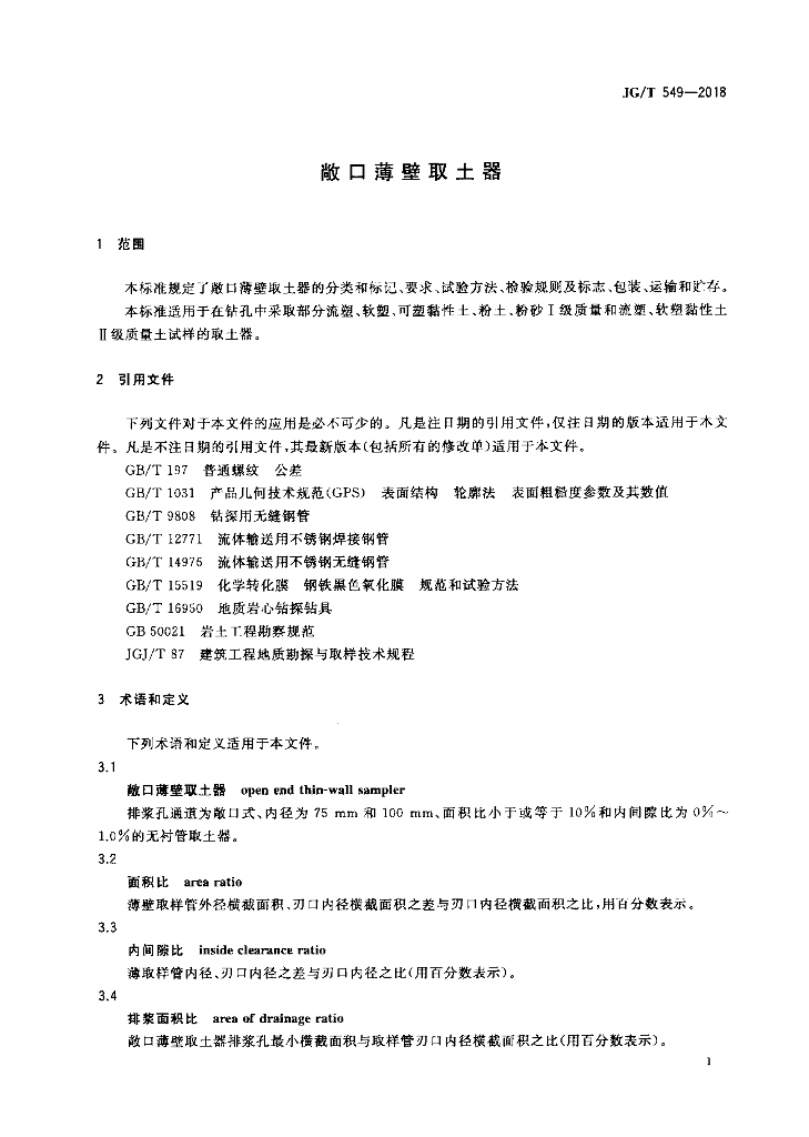 JG/T 549-2018 敞口薄壁取土器