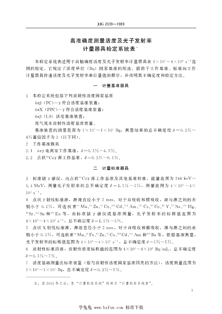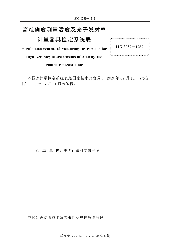 JJG 2039-1989 高准确度测量活度及光子发射率计量器具