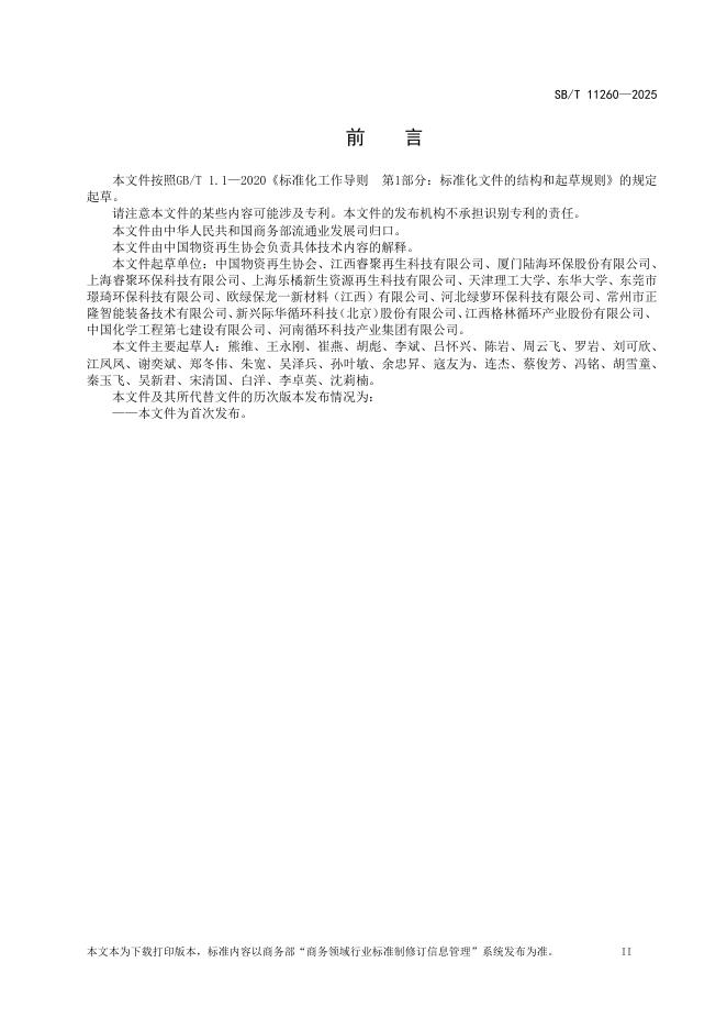 中国物资再生协会、江西睿聚再生科技有限公司、厦门陆海环保股份有限公司、上海睿聚环保科技有限公司、上海乐橘新生资源再生科技有限公司、天津理工大学、东华大学、东莞市璟琦环保科技有限公司、欧绿保龙一新材料(江西)有限公司、河北绿萝环保科技有限公司、常州市正隆智能装备技术有限公司、新兴际华循环科技(北京)股份有限公司、江西格林循环产业股份有限公司、中国化学工程第七建设有限公司、河南循环科技产业集团有限公司。