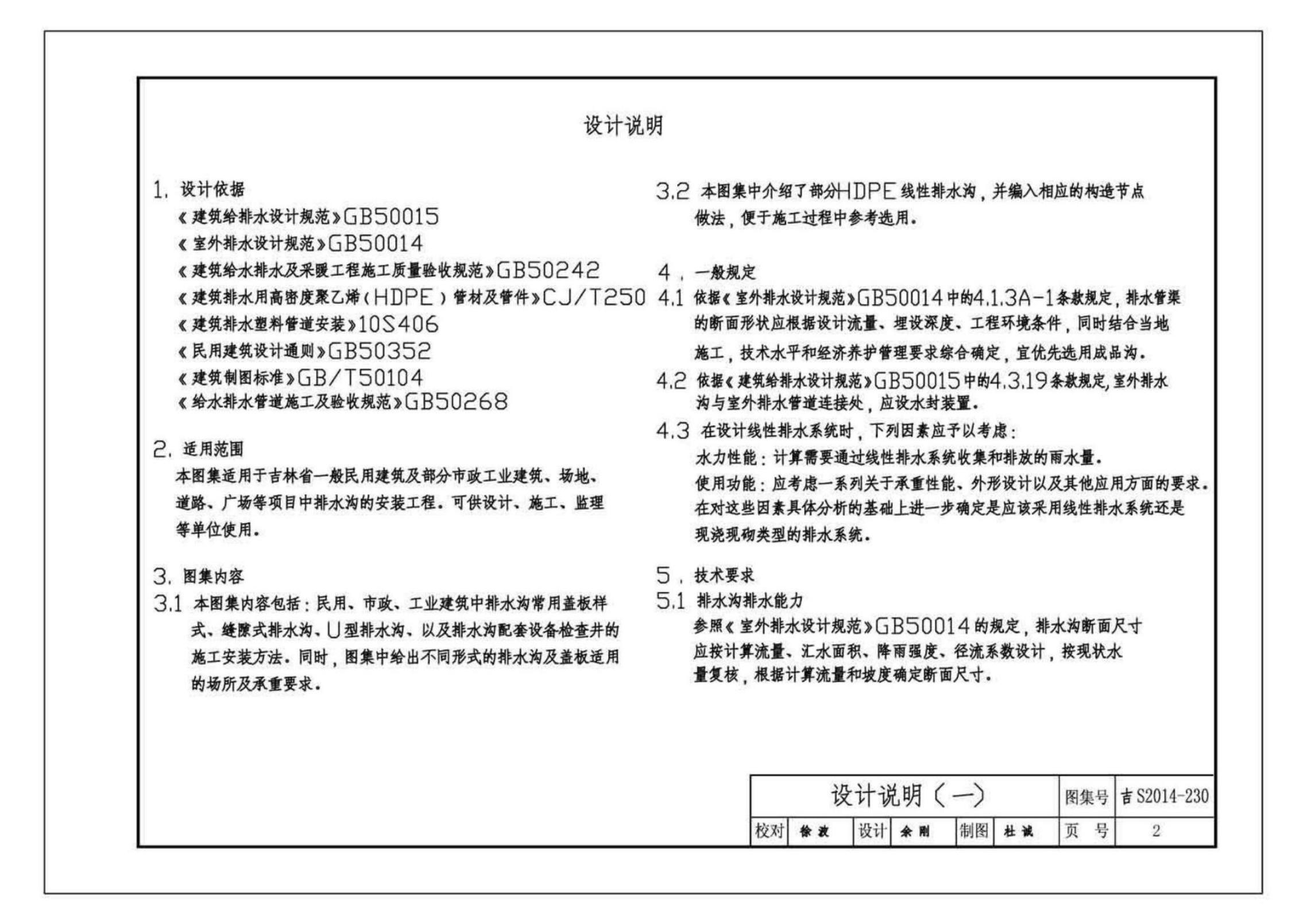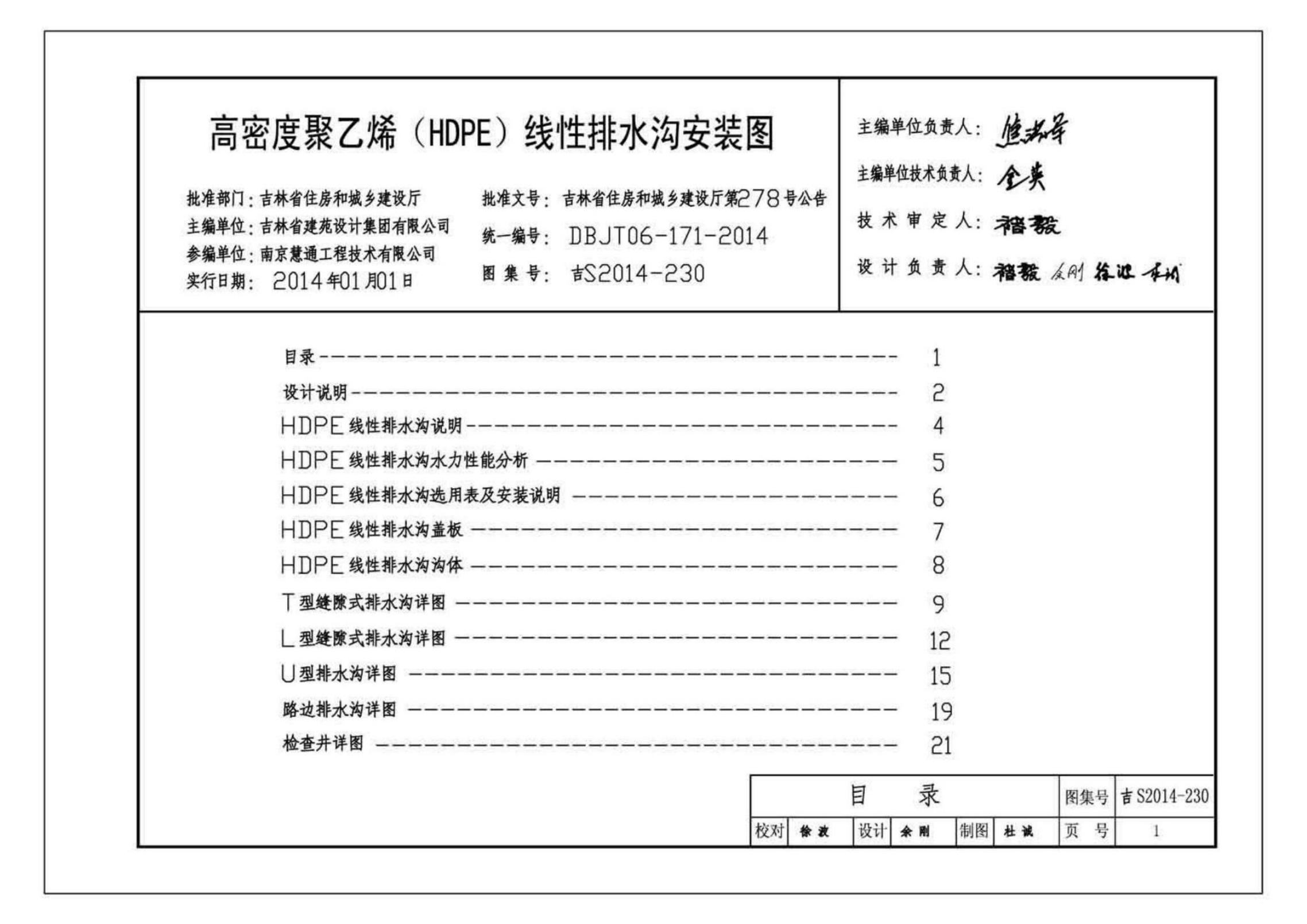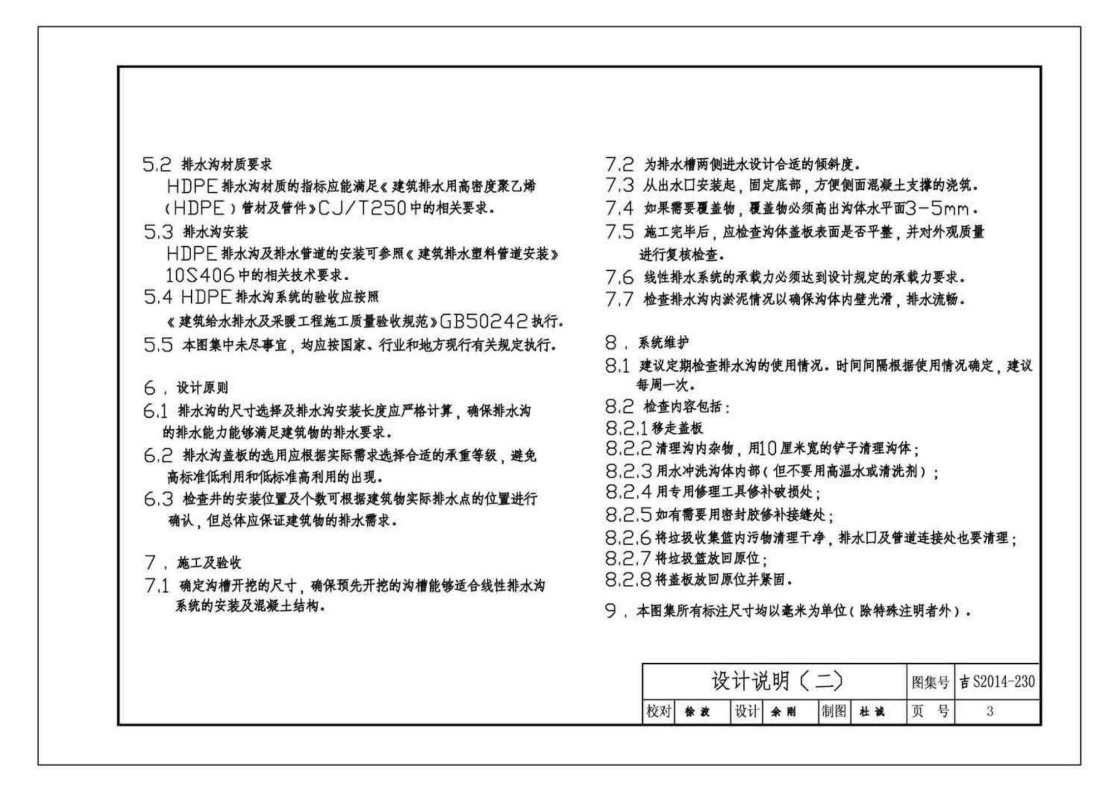 吉S2014-230 高密度聚乙烯(HDPE)线性排水沟安装图设计图集