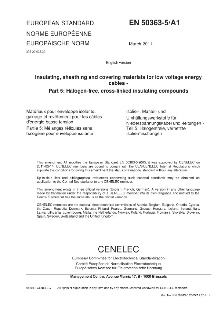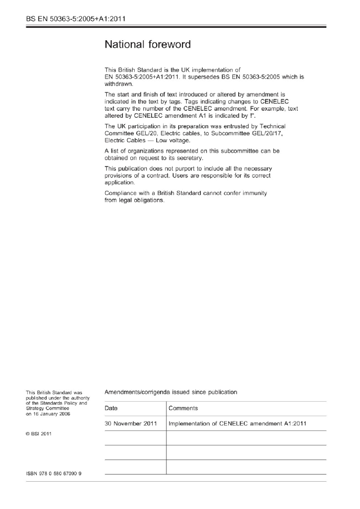 BS EN 50363-5:2005+A1:2011 低压电力电缆绝缘,护套和内衬材料-第5部分 无卤,交联绝缘化合物