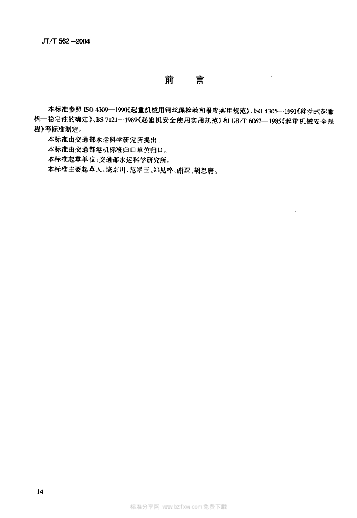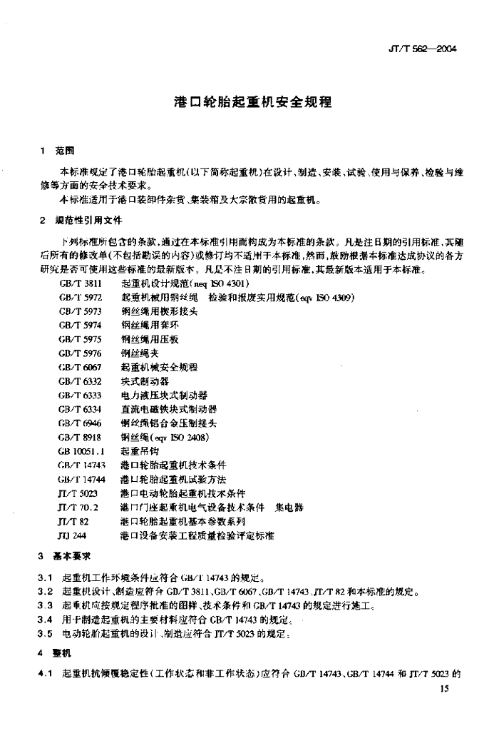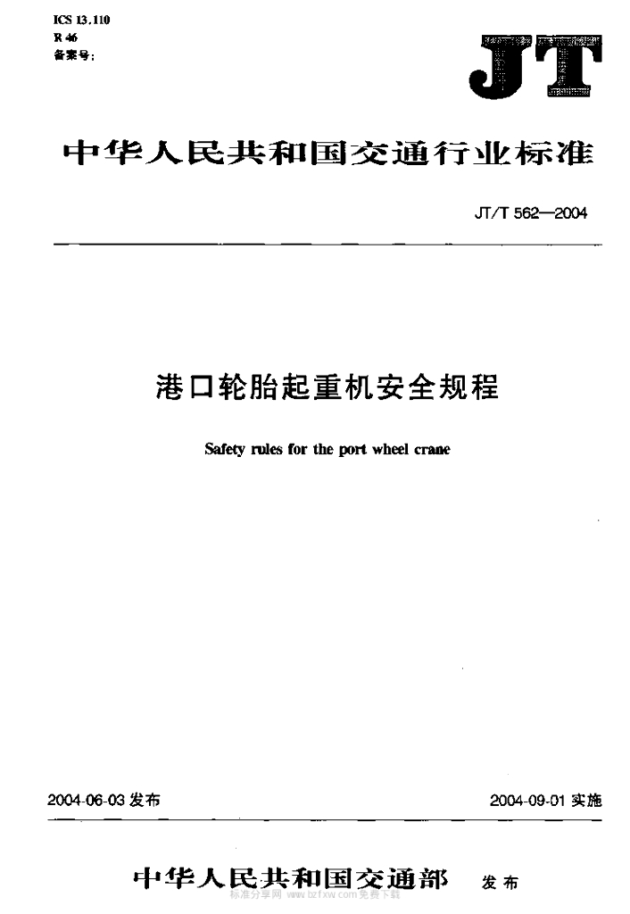 JT/T 562-2004 港口轮胎起重机安全规程