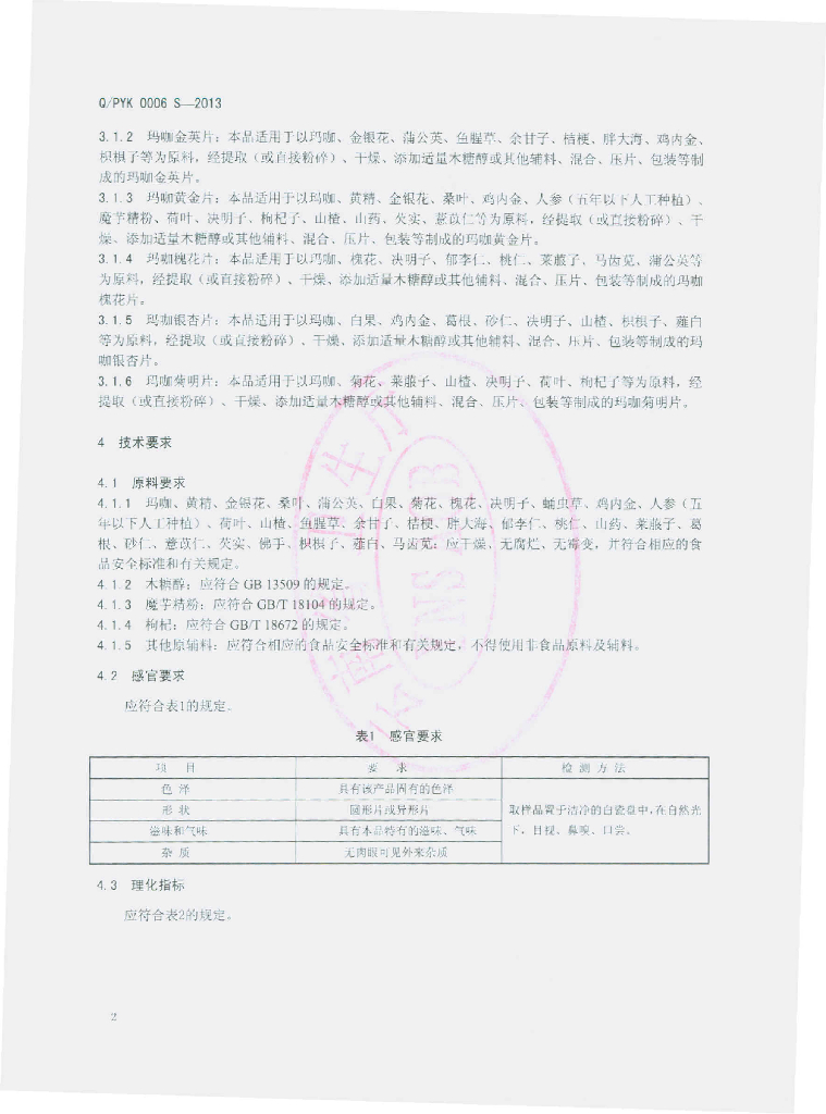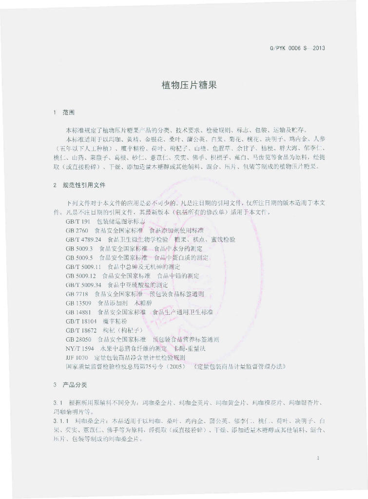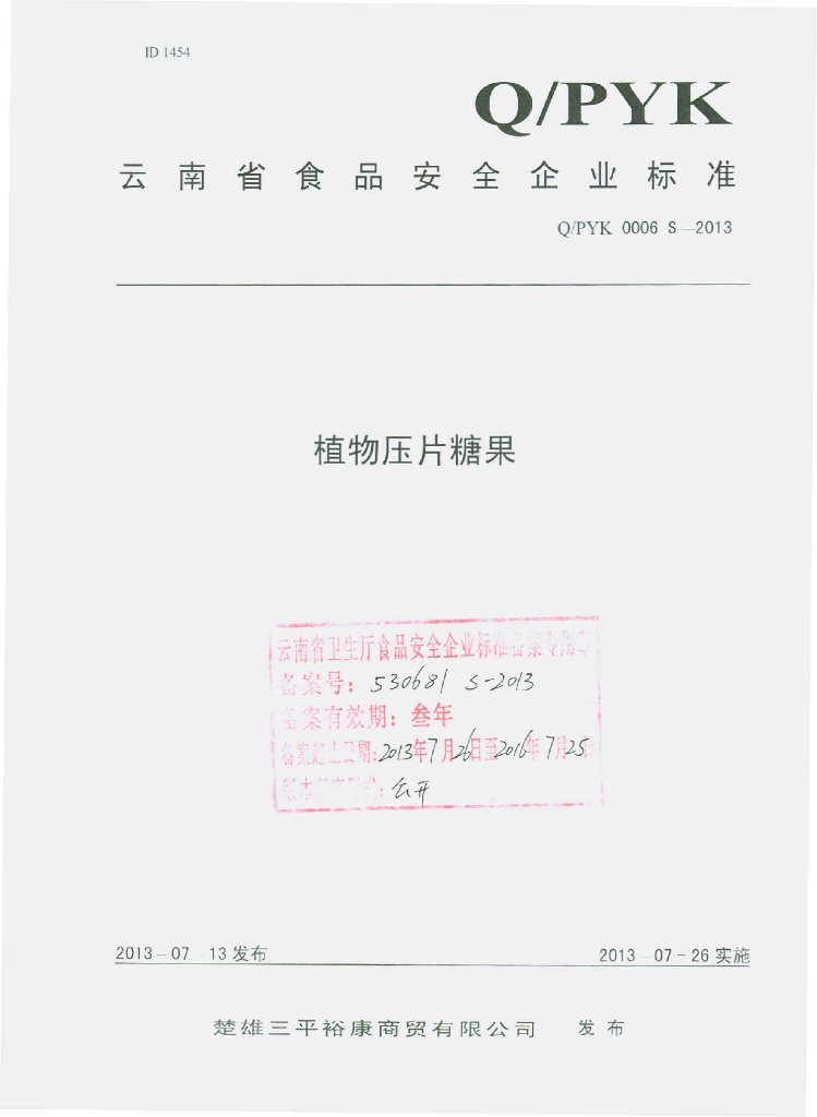 Q/PYK 0006S-2013 楚雄三平裕康商贸有限公司 植物压片糖果