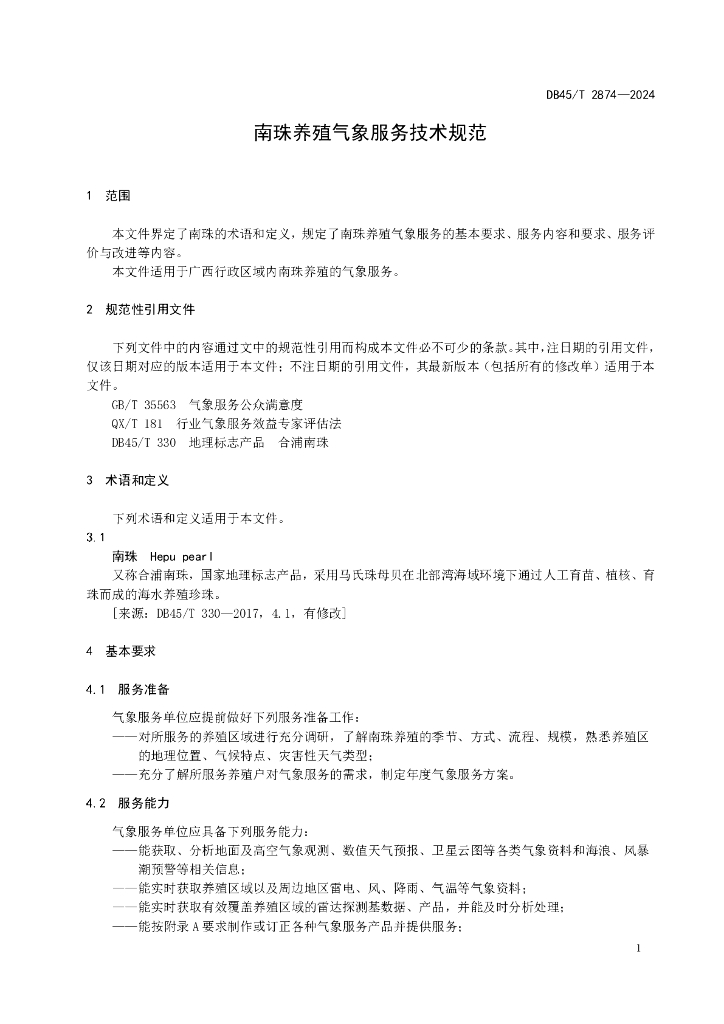 DB45/T 2874-2024 南珠养殖气象服务技术规范