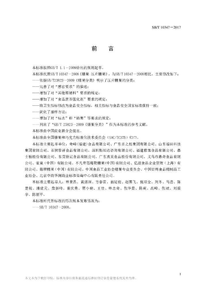 奇峰(福建)食品有限公司、广东喜之郎集团有限公司、山东福田科技集团有限公司、北京中商华测商业标准咨询中心有限责任公司、石狮黎祥食品有限公司