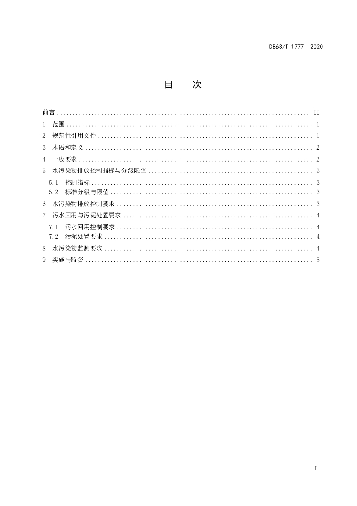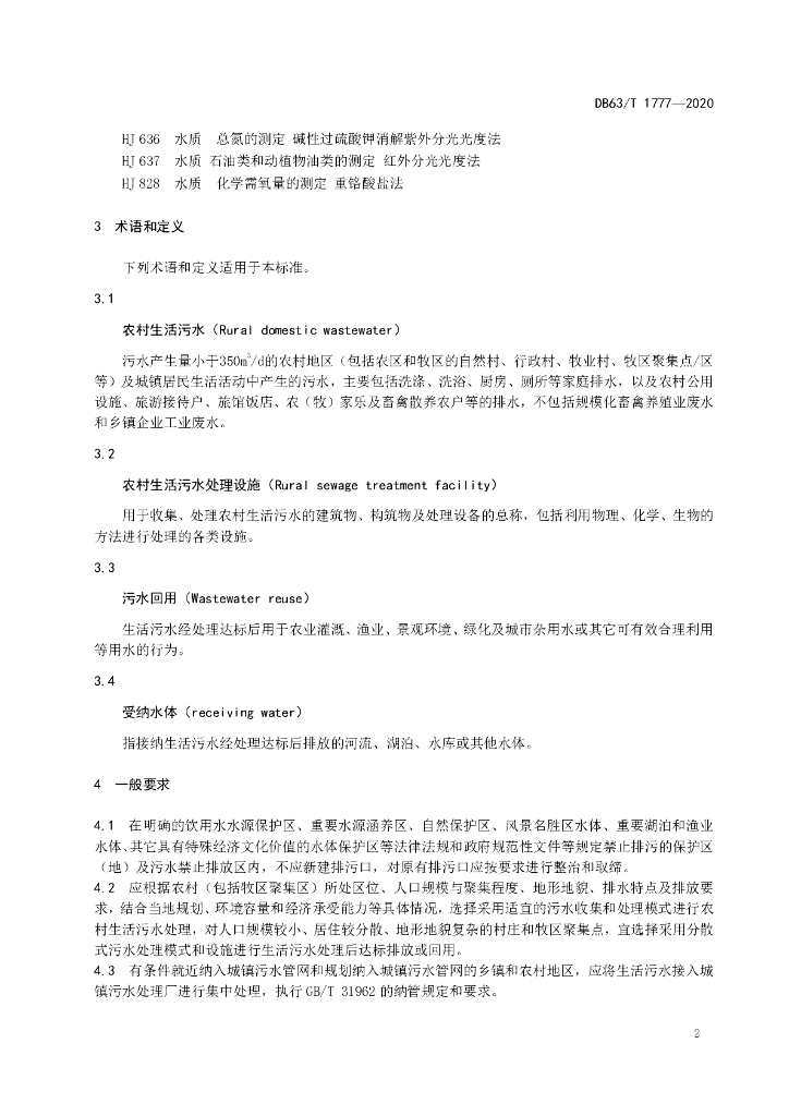 DB63/T 1777-2020 农村生活污水处理排放标准