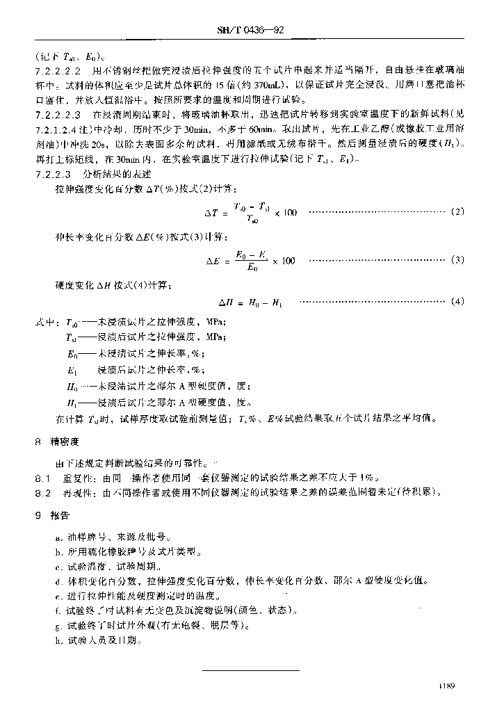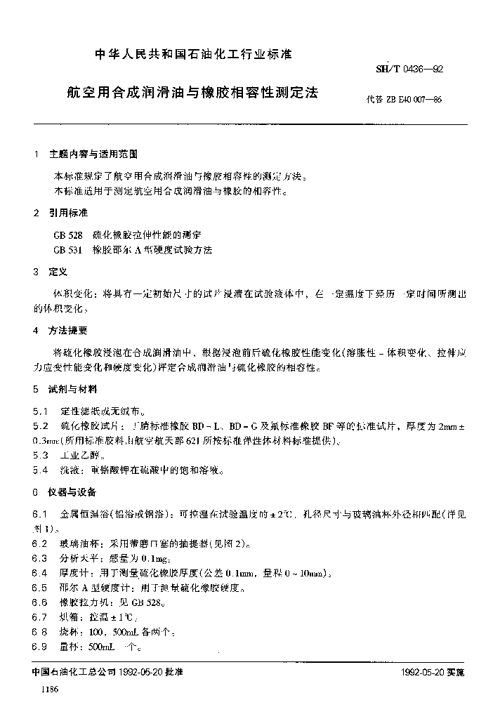 SH/T 0436-1992 航空用合成润滑油与橡胶相容性测定法