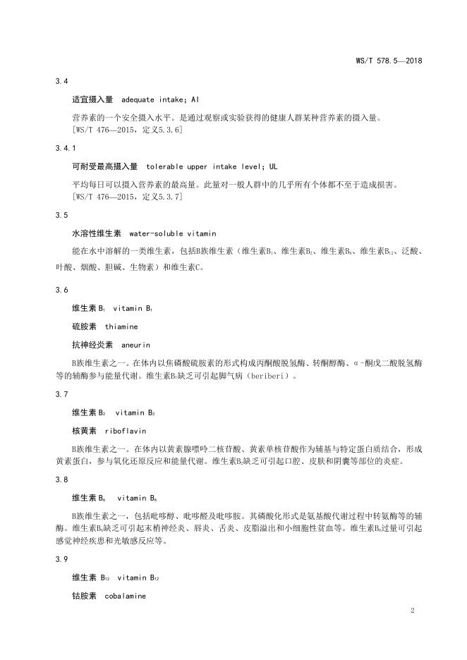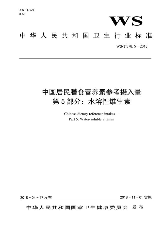 WS/T 578.5-2018 中国居民膳食营养素参考摄入量 第5部分:水溶性维生素