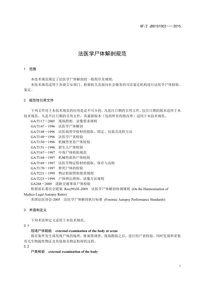 SF/Z JD0101002-2015 法医学尸体解剖规范